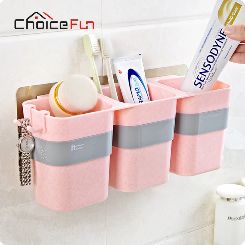 CHOICE FUN 3 Cups Multifunctional Family Pink Wall Mounted Plastic Toothpaste And Electric Toothbru