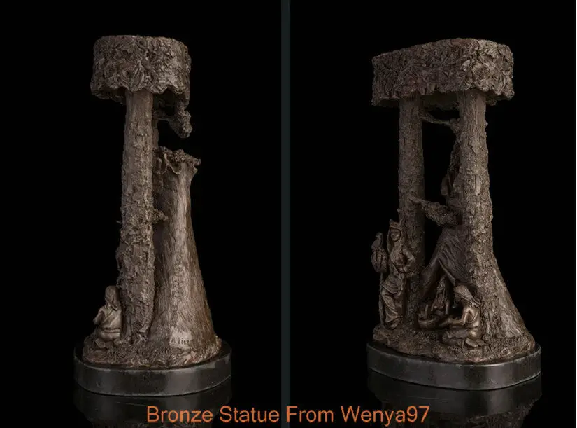 Art Deco Sculpture African Native Tribe Family Life Scene Bronze Statue Signed QQ EW