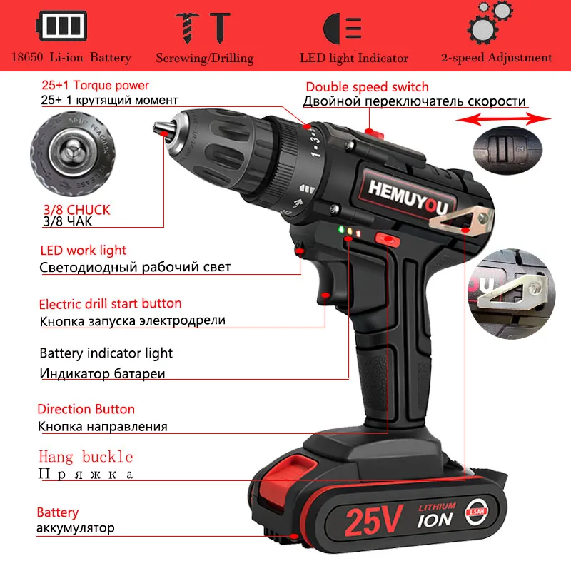 ORIGINAL 25V Electric Drill Home Multi-function Electric Screwdriver Rechargeable Electric Drill lithium Bat