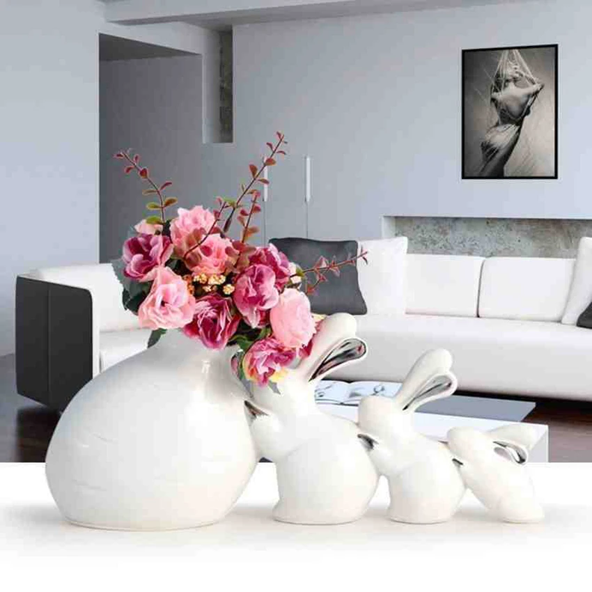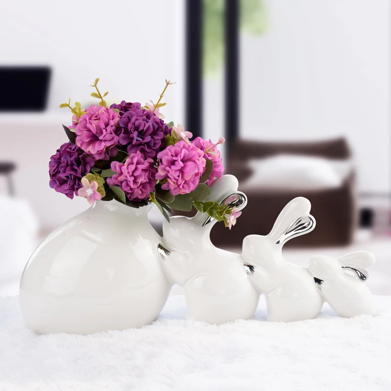 Modern Art Creative Ceramic Vase rabbit family Figurines & Miniatures Wedding Gifts home decor tabl