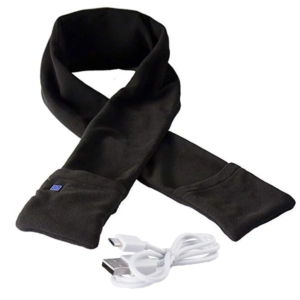 Usb Electric Scarf Unisex Solid Color Velvet Safe Electric Heating Scarf Neckerchief Shawl Washable